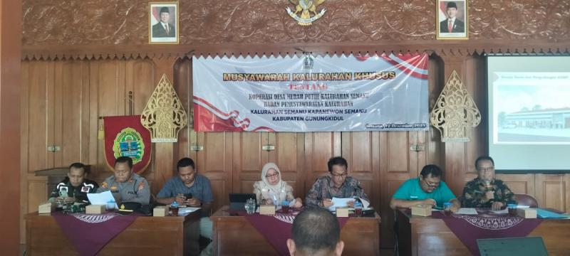 Bamuskal (Badan Permusyawaratan Kalurahan) diketuai Ir. Edi Hertanta memimpion Musyawarah Kalurahan Khusus (Muskalsus) Koperasi Desa Merah Putih (KDMP) Kalurahan Semanu yang dihadiri langsung oleh Panewu Semanu Anik Suprihatin di dampingi Kapolsek Semanu dan Danramil Semanu, Perwakilan dari Dinas Pemberdayaan Masyarakat dan Kalurahan, Pengendalian Penduduk dan Keluarga Berencana Kabupaten Gunungkidul beserta Pendamping Desa Kapanewon Semanu, Perwakilan dari Dinas Perindustrian, Koperasi, Usaha Kecil dan Menengah dan Tenaga Kerja Kabupaten Gunungkidul beserta Pendamping Koperasi, Lurah Semanu Drs. Harto Muadzan, M.Si., beserta Carik, Kasi,Kaur , Dukuh dan Stafnya, Babinsa, Bhabinkamtibmas, Perwakilan dari PKK, Karang Taruna, LPMKal, FKPPS, Gapoktan, serta tokoh masyarakat dari 19 Padukuhan.