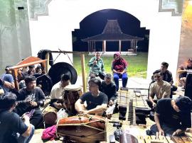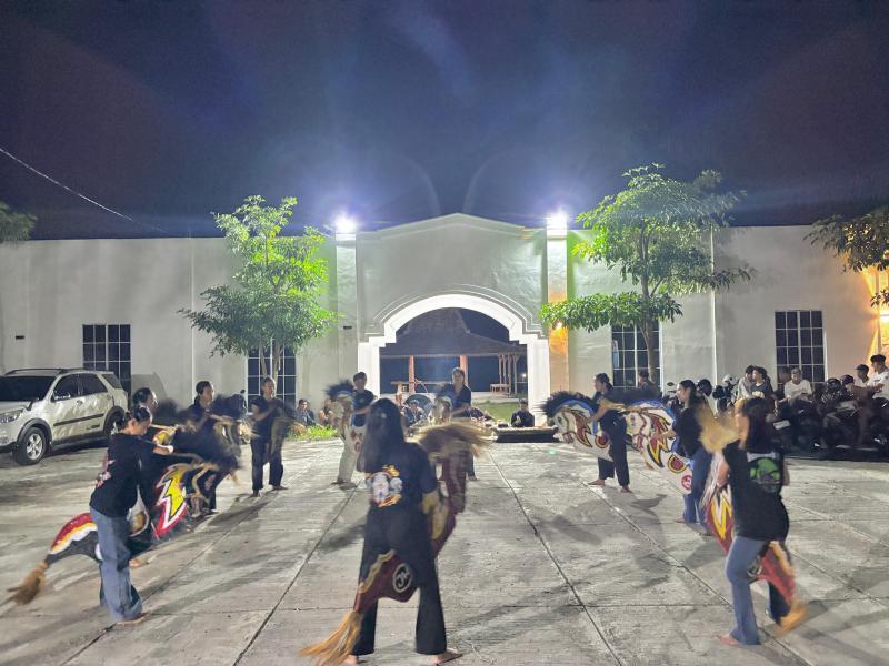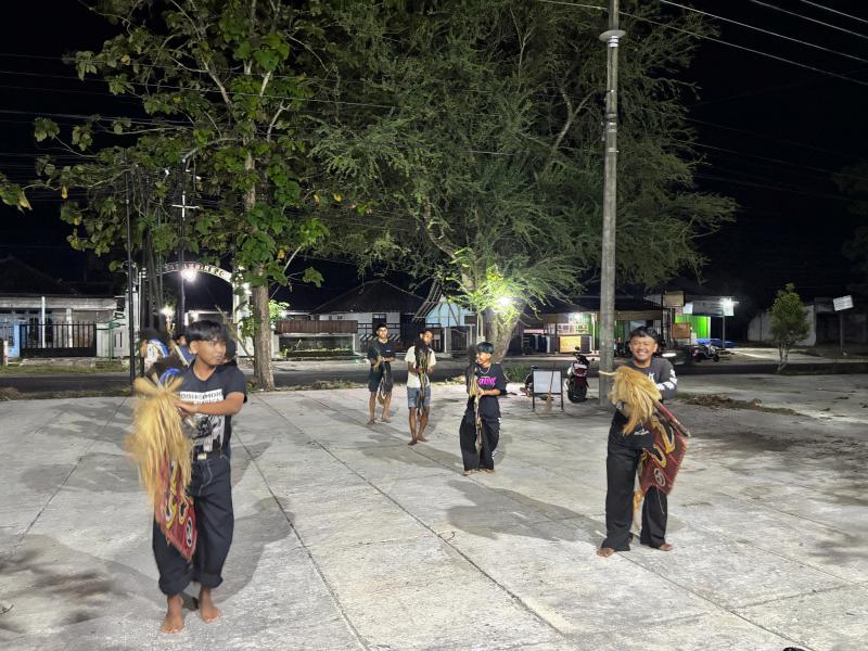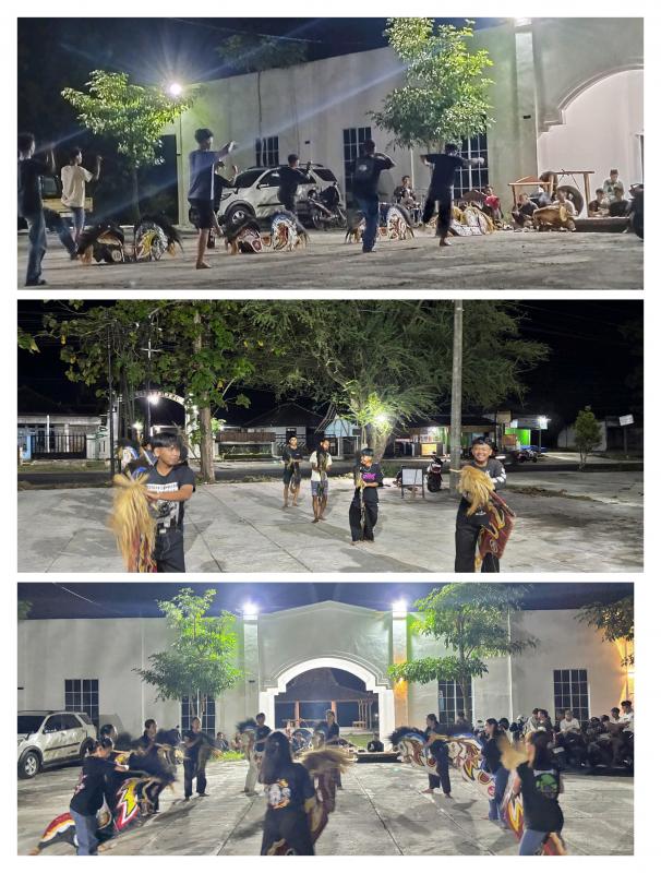 Kelompok seni Jathilan Mudho Budoyo dari gabungan Padukuhan Tambakrejo dan Padukuhan Clorot mengadakan latihan untuk kelompok putra dan putri di halaman Parkir Ruang Terbuka Hijau dan Kawasan Wisata Budaya, dalam rangka persiapan pentas.